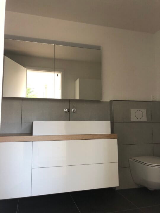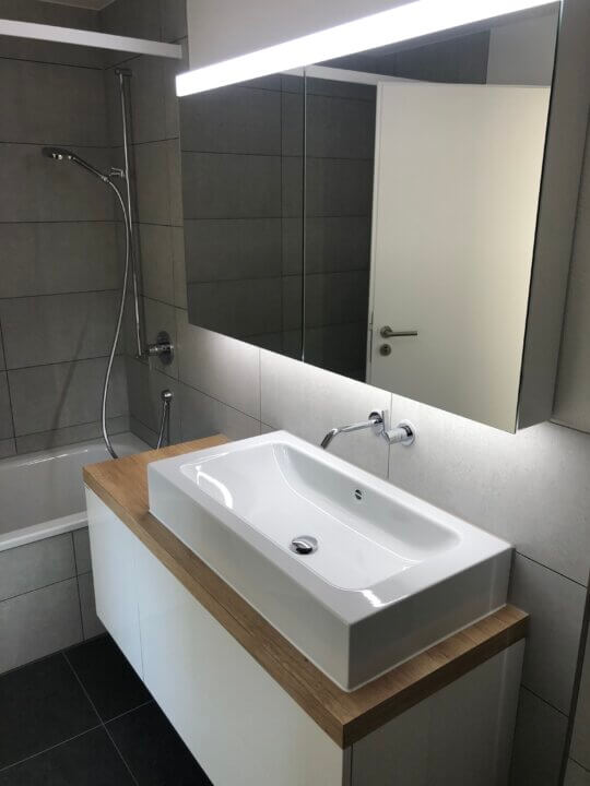 Nach jahrelanger Suche konnte sich Familie Kreit den Wunsch nach einem Eigenheim erfüllen. Bereits beim Kauf durfte Krieg Sanitär Heizung Herr und Frau Kreit bezüglich der zu erwartenden Umbaukosten zur Seite stehen. Nach dem Kauf wurde viel geplant und noch mehr administrativer Aufwand betrieben. Zahlreiche behördliche Hürden mussten gemeistert werden bis die geplanten Arbeiten alle bewilligt wurden. Krieg Sanitär Heizung durfte neben der Gesamtbauleitung auch die Badezimmer und die Heizung einbauen. Eine neue Erdsonden-Wärmepumpe heizt nun das umgebaute Einfamilienhaus von Familie Kreit. Für die Wärmeabgabe in die verschiedenen Räume wurde eine Fussbodenheizung in den bestehenden Unterlagsboden verlegt. Das Warmwasser wird über eine Solaranlage «indach» sowie ergänzend durch die Wärmepumpe bereitgestellt.