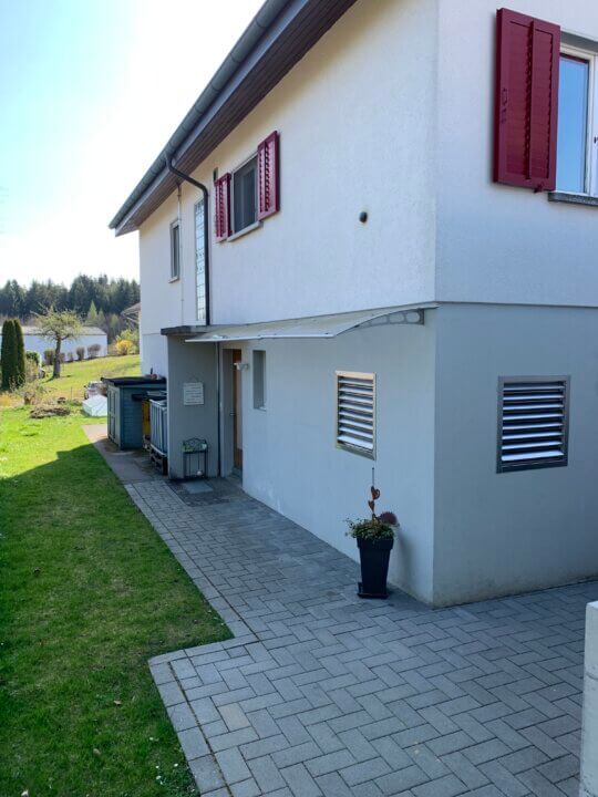 Familie Gross wollte von ihrer bestehenden Öl-Heizung wegkommen. Sie war auf der Suche nach einer erneuerbaren Heizung und einem Heizungspartner, welcher sie in ihrem Vorhaben unterstütze. Die baulichen Gegebenheiten passten ideal für eine innen-aufgestellte Wärmepumpe. Somit war keine Baueingabe notwendig und draussen im Garten musste kein Platz hergegeben werden. Es wurde ein neuer Technikraum definiert, welcher sich im alten Öl- Tankraum befindet. Auf Empfehlung der Firma Krieg Sanitär Heizung wurde der Wassererwärmer wieder am alten Standort, circa 12 m von der Wärmepumpe entfernt, installiert. Dadurch konnten lange Ausstosszeiten verhindert werden und zusätzliche Kosten für eine Zirkulationspumpe vermieden werden.