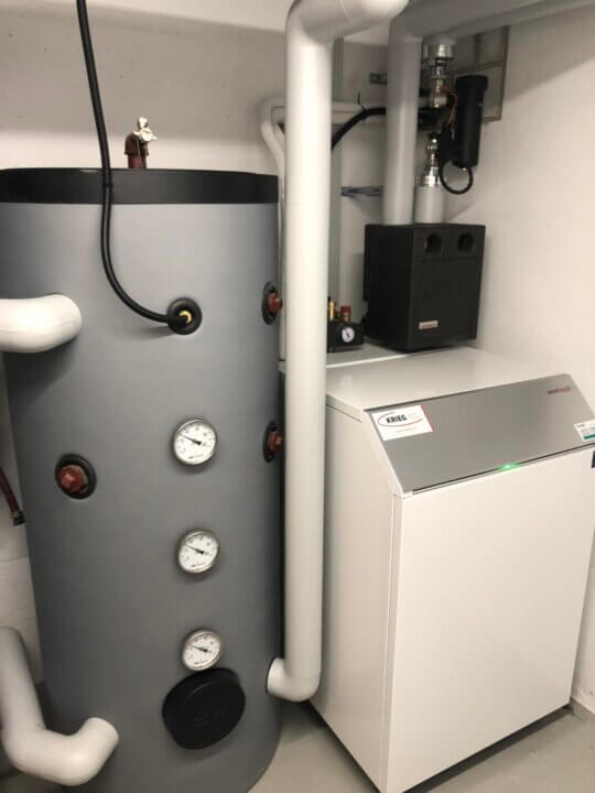 Familie Hosmann entschied sich, ihre alte Ölheizung durch eine effiziente und umweltfreundliche Wärmepumpe zu ersetzen. Die bestehende Solaranlage zur Warmwassererzeugung wurde gekonnt in das neue Heizsystem integriert. Die Heizprofis von Krieg haben sich um die formalen Angelegenheiten, wie Näherbaurecht zur RBS-Bahn, Baugesuch und Fördergelder gekümmert. Auch die Koordination der Arbeiten aller Unternehmer wurde durch Krieg Sanitär Heizung erledigt. Neu sorgt eine Luft-Wasser-Wärmepumpe in Split-Bauweise für behagliche Wärme im Haus. Was zudem sehr erfreulich ist: Mindestens 2/3 der benötigten Energie kommt aus der Luft.